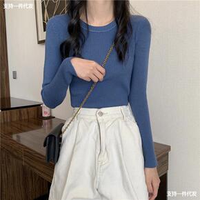 秋冬季韩版圆领内搭长袖毛衣女士潮2021年新款修身...