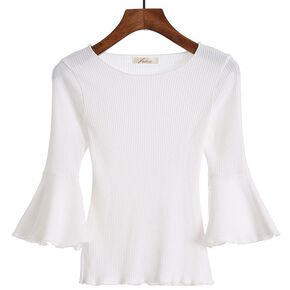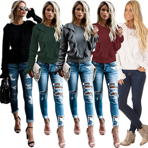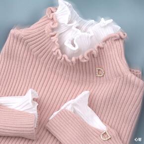 包芯纱面料 高领毛衣假两件蕾丝荷叶木耳边上衣女20...