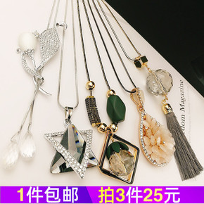 毛衣链女长款百搭简约时尚水晶配饰项链大气吊坠韩国个...