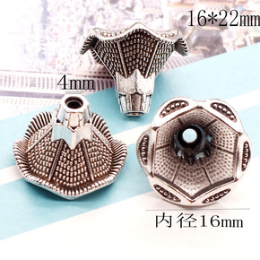 新款合金花冒复古流苏配件古银喇叭花帽民主风毛衣链项...