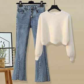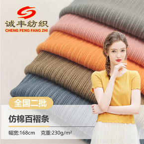 仿棉百褶条230g罗纹针织布女装打底衫阔脚裤家居服...