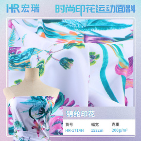 200g高弹锦纶面料 水草喇叭花印花连衣裙面料 女...