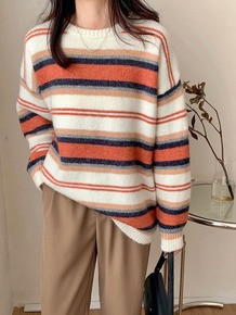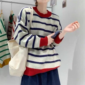 2021款条纹毛衣撞色针织衫长袖秋冬打底衫女休闲气...