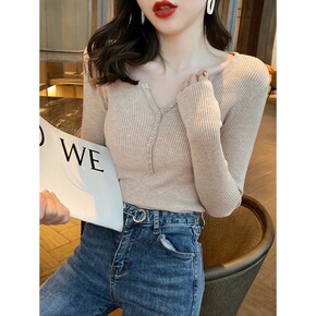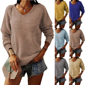 欧美跨境2022秋冬新款外贸时尚毛衣女装长袖V领宽...