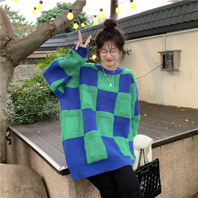 200秋冬新款套头毛衣女拼色韩版软糯慵懒风Polo...