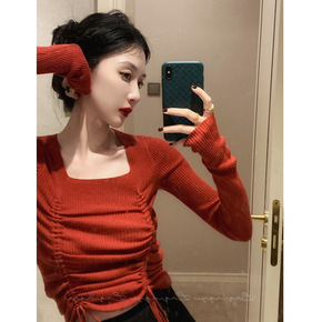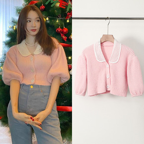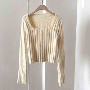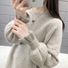 2021秋冬新款韩版法式复古毛针织衫长袖上衣女甜美...