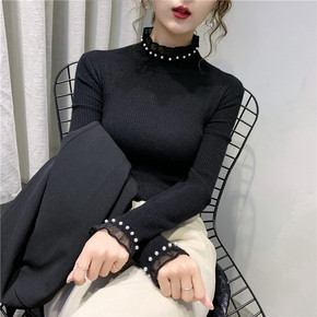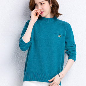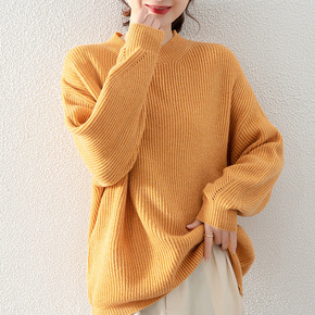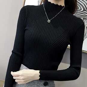 2021年秋冬新款长袖套头厚实针织上衣半高领毛衣女...