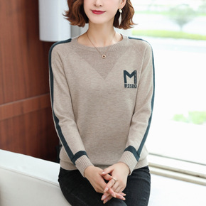 减龄学姐 短款针织毛衣女冬新款圆领字母印花设计感时...