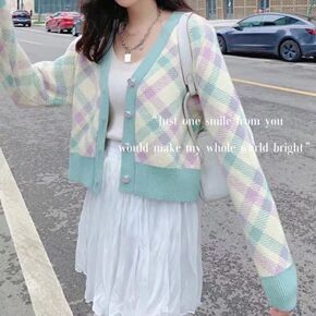 秋冬装2021新款开衫毛衣女慵懒风针织外套短款宽松...