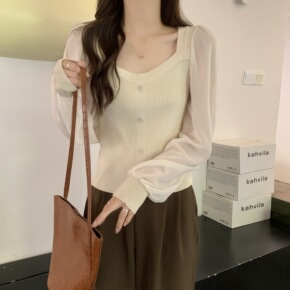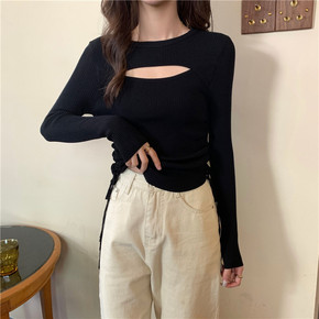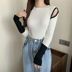 实拍大码女装胖MM早秋季新款设计感小众露肩针织打底...