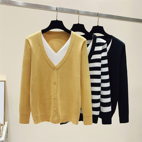 大码女装~针织衫200斤胖妹妹毛衣假两件外套上衣潮...