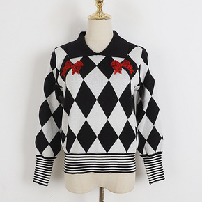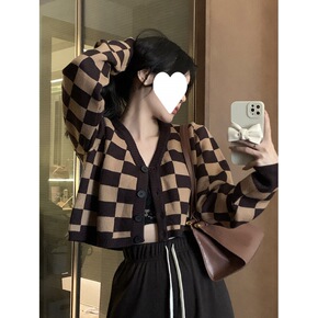 大码休闲格子长袖针织开衫外套女初秋胖mm单排扣短款...