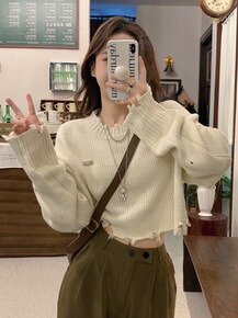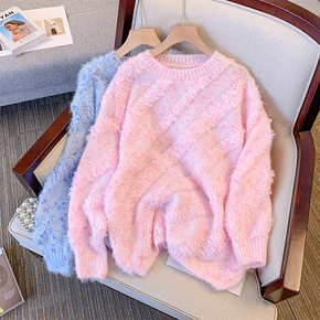 宽松大码春秋时髦慵懒洋气长袖胖mm文艺毛衣2022...