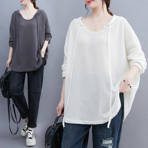 日韩热卖~大码女装潮早秋胖mm长袖上衣女设计感小众...