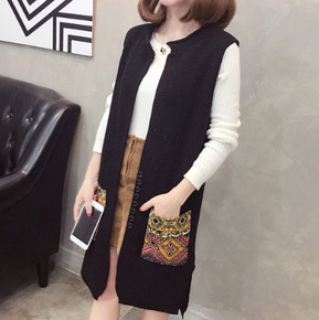 实拍马甲女冬中长款韩版新款潮针织背心无袖春秋毛线开...