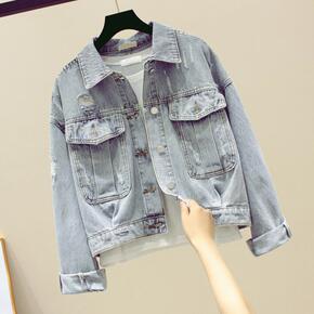 韩国短款牛仔外套女2020秋冬新款韩版宽松bf蝙蝠...