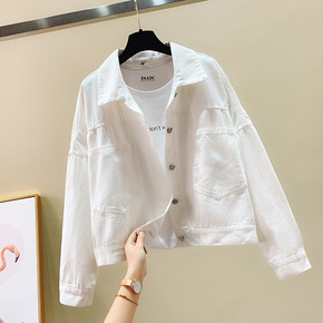 韩国白色牛仔外套女短款2020年秋季新款韩版宽松b...