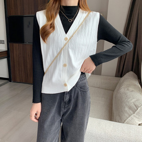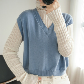 v领针织马甲背心女新款宽松显瘦外穿无袖毛衣打底潮坎...