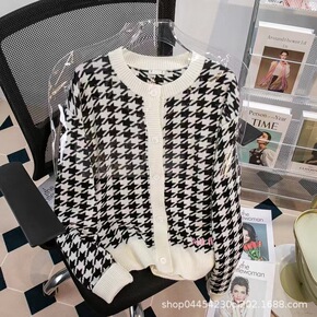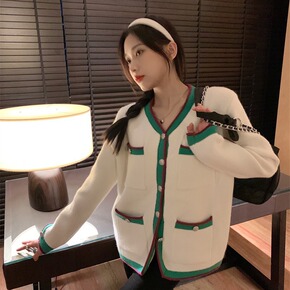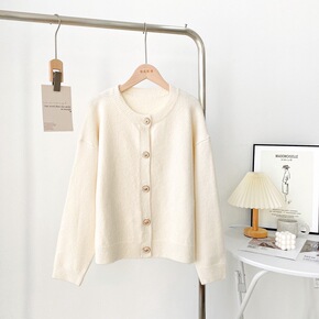 2022秋冬装新款小香风纯色羊毛针织开衫外套女毛衣...