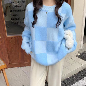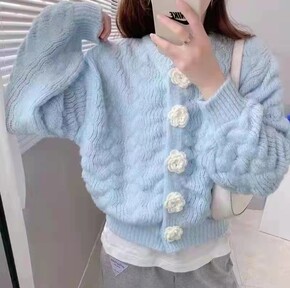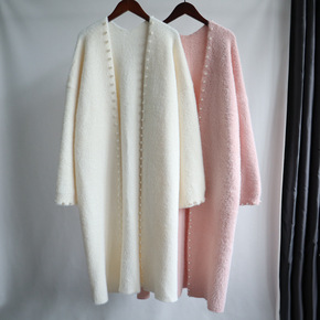 钉珠仿水貂绒针织开衫女2021秋冬新款长款韩版宽松...
