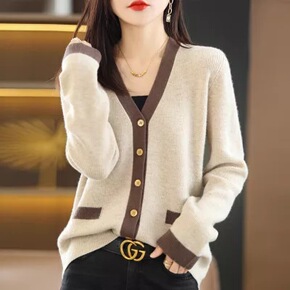 2022新款软糯100羊毛衫V领女加厚宽松慵懒扭花...
