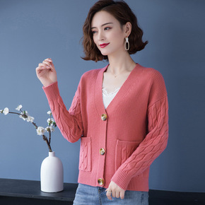 秋季针织羊绒开衫短款小外搭羊毛衫2022新款洋气宽...