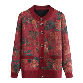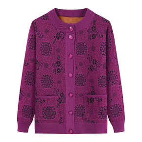 老年人一体绒开衫外套毛衣加绒妈妈装奶奶装上衣保暖针...