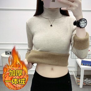 恒源祥加绒加厚一体绒毛衣女高领保暖内搭上衣秋冬修身...