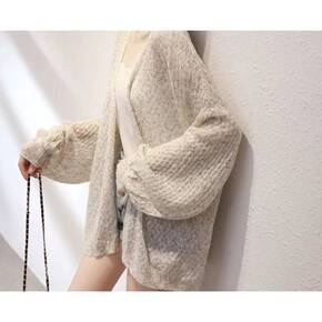 防晒衣薄款针织开衫春夏女装时尚新款宽松韩版灯笼袖网...