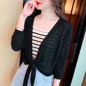 2021夏季新款韩版中长款冰丝防晒衣宽松版针织外套...