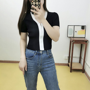 秋冬款简约纯色半高领套头百搭修身长袖短款坑条针织打...