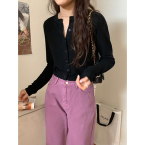 【征潮】复古百搭黑色针织防晒开衫女设计感小众短款上...