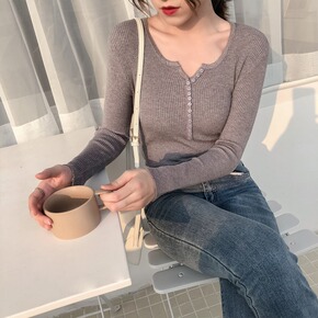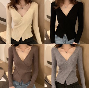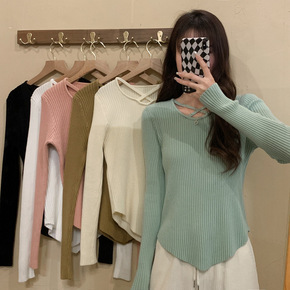 打底毛衣女针织衫2022早春新款修身小心机纯欲长袖...