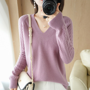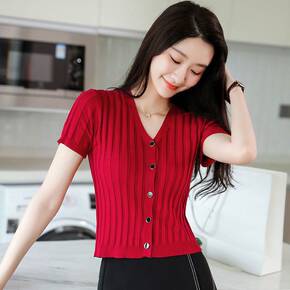 2021秋冬新款V领毛衫女修身长袖开襟针织衫韩版套...