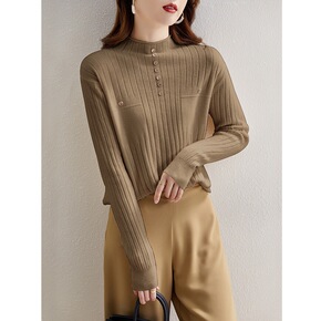 2022春款女装纯棉半高领长袖女士针织衫休闲打底衫...