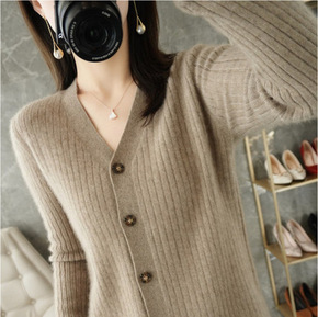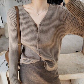 2022秋冬装新款针织衫女长袖V领坑条百搭修身开衫...