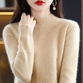 半高领羊毛衫女100纯羊毛针织打底衫秋冬新款针织毛...
