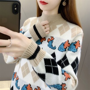 2020秋季新款韩版针织衫女毛衣打底衫女上衣开衫印...