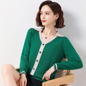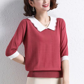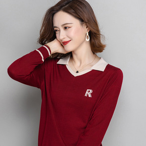 2022秋跨境女式针织衫韩版POLO领套头打底衫外...