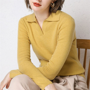 2021年秋冬新款Polo领针织衫女设计感小众修身...