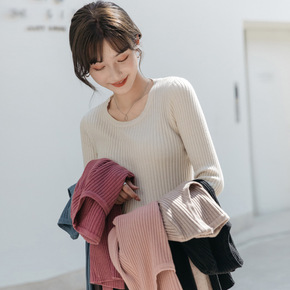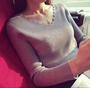 针织衫秋季新款修身打底衫女毛衣秋冬v领长袖上衣...