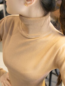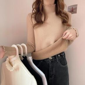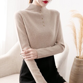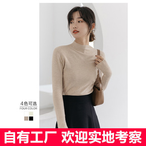 2021秋冬新款半高领毛衣女修身上衣长袖中领内搭打...