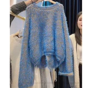 水貂绒毛衣女2021秋冬新款宽松内搭卡通刺绣慵懒风...
