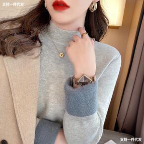 加绒/不加绒 加厚不毛仿貂绒秋冬半高领毛衣女修身针...