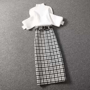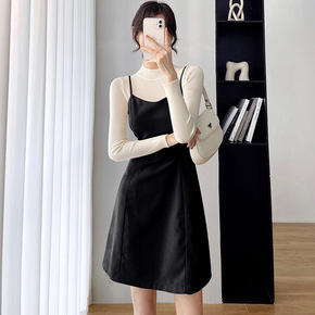 洋气针织两件套吊带假两件针织衫上衣+高腰开衩包臀短...