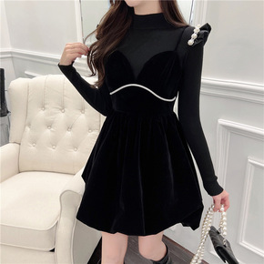 金丝绒连衣裙女秋装2020年新款内搭打底长款过膝秋...
