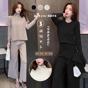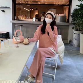 秋冬季日韩新款休闲温柔风针织坠感阔腿裤两件套洋气毛...