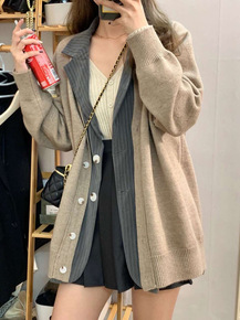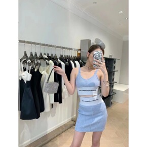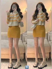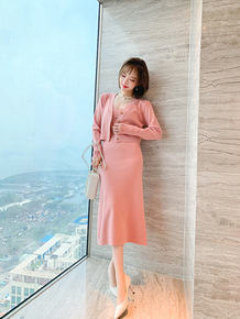 上新-甜心辣妹短款针织开衫+吊带修身一步裙两件套装...