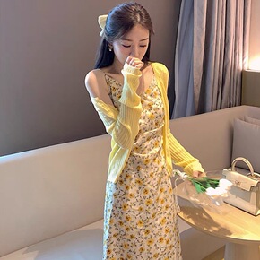 2020年新款日系温柔纯欲风吊带裙子两件套装设计感...