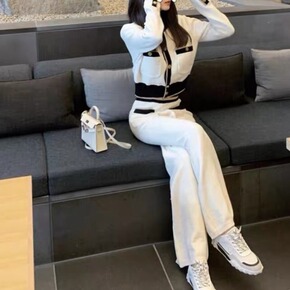 官方图 时尚套装女2021秋冬新款显瘦针织毛衣洋气...